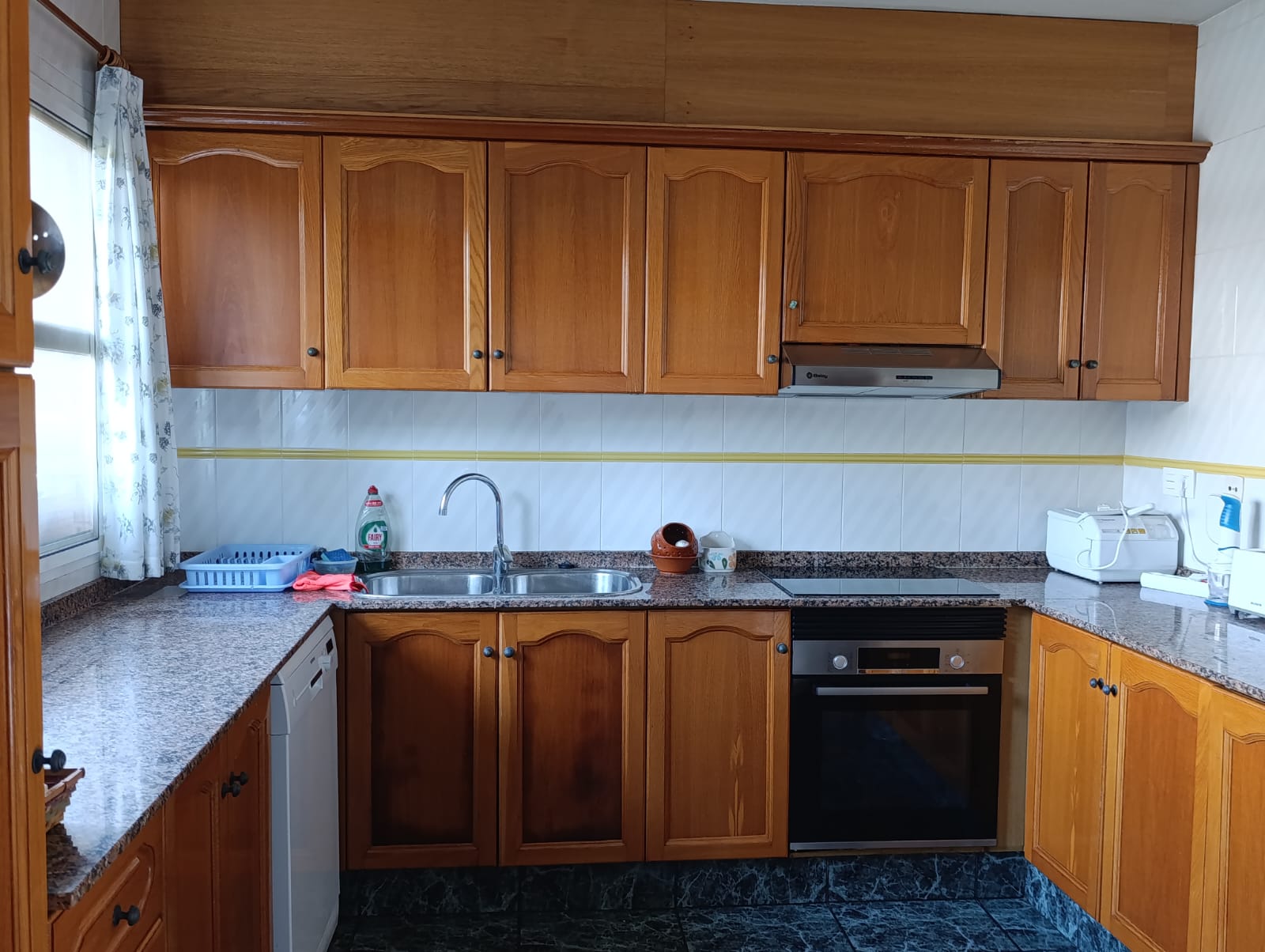 Planta baja (70 m²): amplio y luminoso salón-comedor con chimenea de leña, cocina independiente totalmente equipada y aseo.